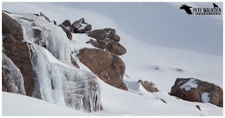By mid-afternoon my toes were starting to freeze and even pressing my Zippo handwarmer against my boots failed to warm things up. On my way down, I noted that some of the hares from the area below had gathered on some rocks high up the hill, and later Andy said that this is often where they go when they've been displaced by people approaching them.