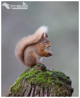 Tuesday was an early start to spend a morning with Neil McIntyre's red squirrels. Neil mentioned that he thought at least six individuals had been visiting, so I had high hopes, and after only a few minutes of setting up, a couple appeared from the trees, bounding almost weightlessly over to see what had been laid out.