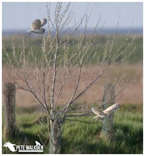Then it was over to the owls site for another go, and we weren't disappointed. Once more, both owls appeared together and hunted around the fields in front of us.