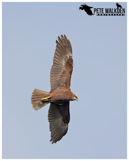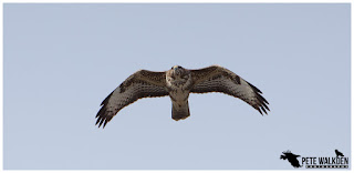 I could just about balance the camera on the tripod to grab a few record shots before it vanished from sight behind the trees. I hoped it might circle around for another view, but alas it failed to do so. Great to see though. Judging by the direction from which it appeared, it probably flew into the reserve across the rifle range. There's some irony, in that it had less chance of being shot on there than when it eventually finds itself over a grouse moor in a few weeks time.