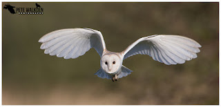 Then, after spending a couple of evenings without seeing a barn owl, I spotted one hunting over the marshes in the morning sun. I didn't need any encouragement to get out for a closer look. Needless to say, it had vanished by the time I'd got everything out of the car, but I took a stroll to see if I could relocate it. I didn't. It found me, appearing along the track from me, flying directly towards me. I waited for it to be almost filling the frame before firing off some shots.