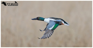 Whenever a female shoveler appeared, the males would gather around, bobbing their heads up and down excitedly, only to watch her paddle off, seemingly unimpressed! The females also brought in more males from across the marshes - perhaps that was the reason for the brief flights, to check for available females!