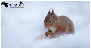 By morning there was a decent covering and we shot over to the red squirrel site, with the aim of getting some portrait images.