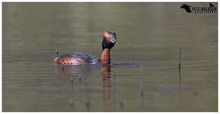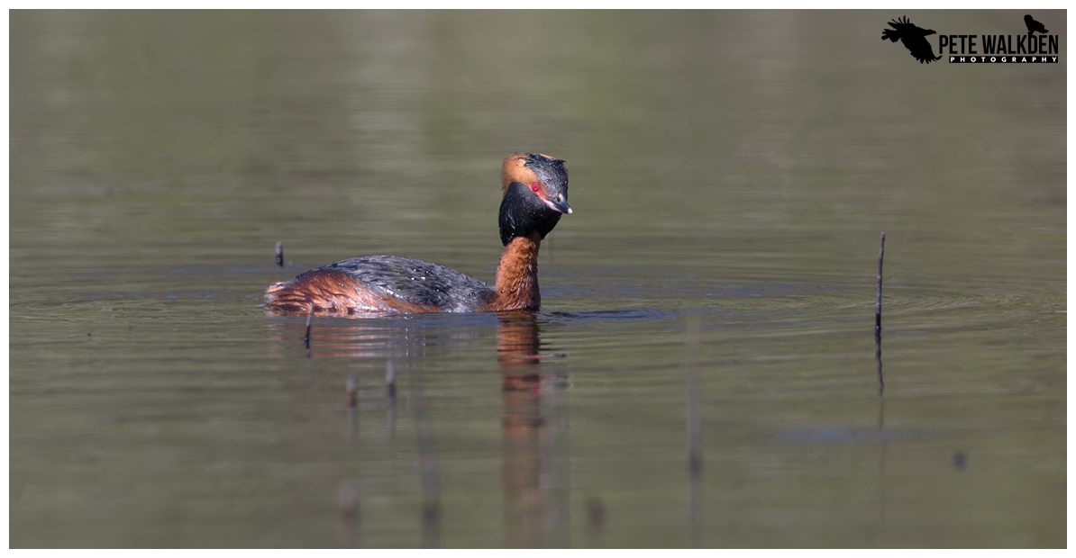 Their call, similar but slightly quieter than that of the little grebes, burst from the reeds nearby, and I held my breath. A glint of gold caught my attention, and then that ruby red eye. A Slavonian grebe had emerged from the reeds, and was busy preening for a moment, before scanning the area, and immediately diving down for some food.