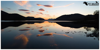 Lyndsey and I pestered Andy to stop off at a couple of lochs along the route home, to take some scenic shots, though he was forced to join in when the sinking sun lit up some clouds over one reflective loch, and created a most beautiful sunset scene.