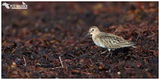 As with many previous visits, I spent time around the marshes in the hope of a close encounter with a hen harrier, and as before, one didn't materialise. Instead I would park up at the back of a small beach area where the tide had left a strip of seaweed, and feeding on the insects on that, were dunlins and ringed plovers. Gorgeous, busy little waders, and tolerant of a noisy car parking up, thankfully.