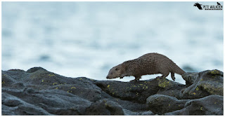 On one of the days mid-week, we tried to track an otter fishing offshore, but were caught up in a severe squall - winds rushing down the hills created a localised gust that lifted me off my feet, and I was thrown into the back of one client, the other was kneeling on the ground, trying not to also be blown along! Add to that horizontal rain, sleet and at times hail, we watched the water in the lochs and out in the bays get lifted up, sometimes forming spouts, spinning like tornadoes before dissipating once more. It was wild out there!