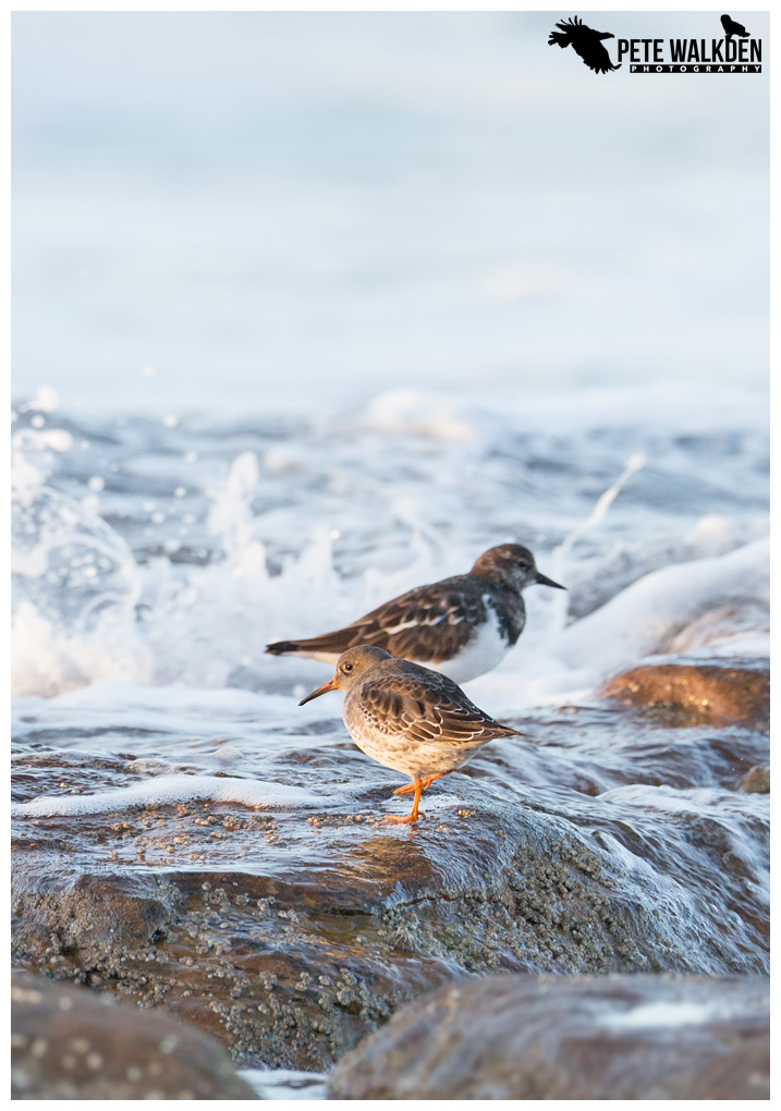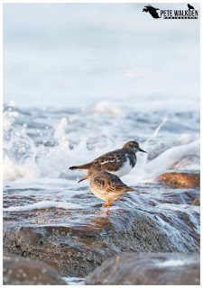 Near the harbour, on some rocks being washed over by the waves, were some waders, and one stood out as being a "purp". I've hardly any images of purple sandpipers, but alas by the time we had got anywhere near close enough for photos, the light had gone. One for next time, perhaps.